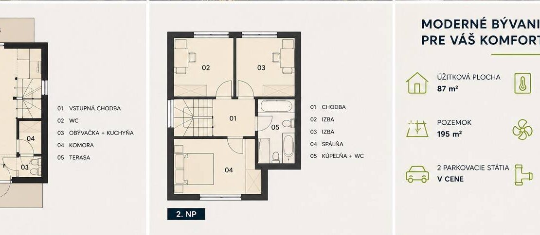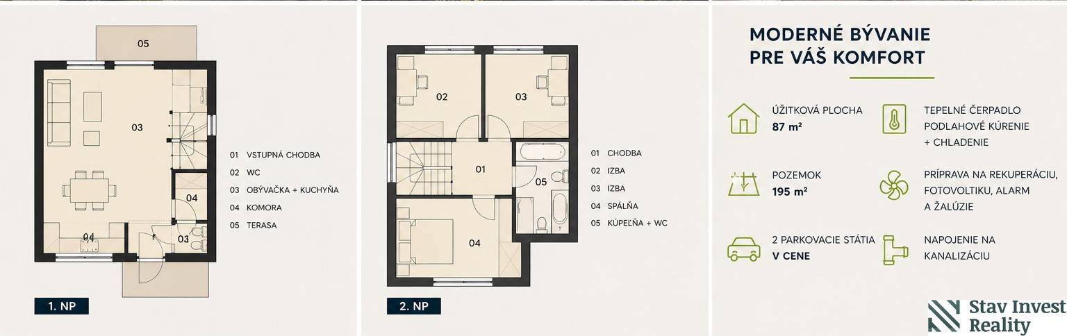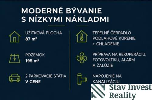 3-izbový RD – novostavba, tepelné čerpadlo, 2 parkovacie státia