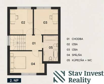 Na poschodí sa nachádzajú 2 samostatné izby a kúpeľňa s WC.